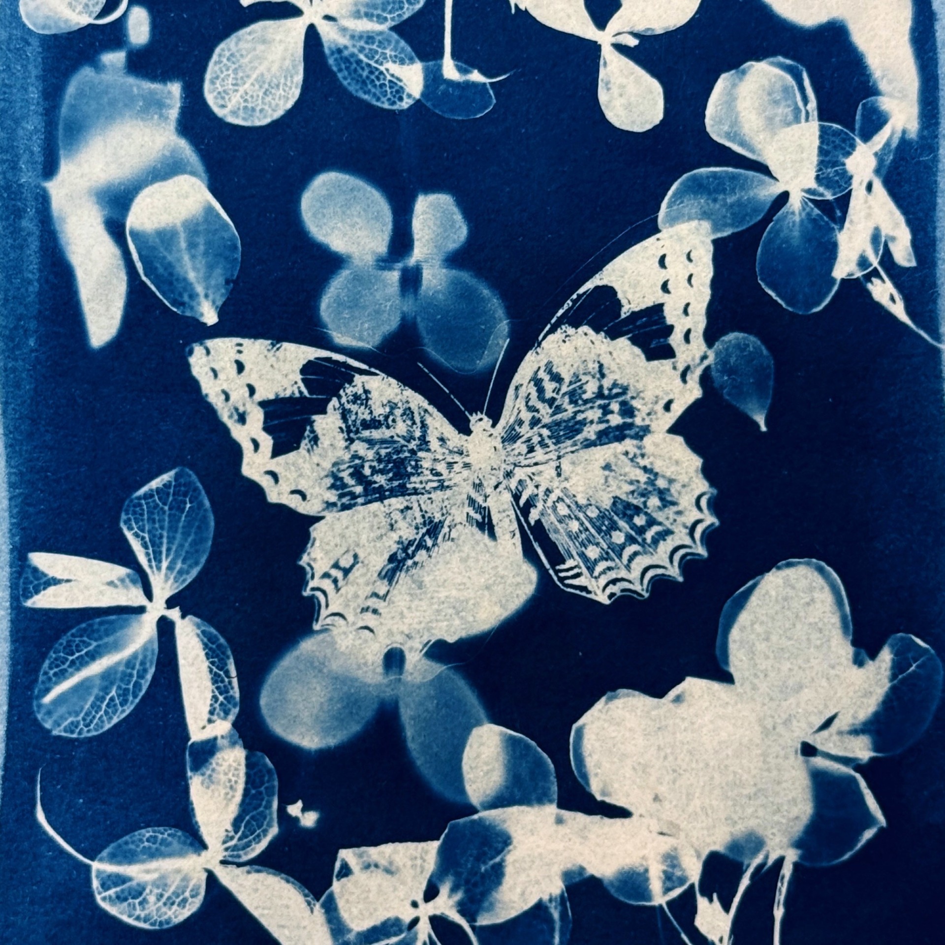 當陽光灑落紙面,時間便被溫柔收藏。影子化作藍色的記憶,植物、花瓣,都在此刻成為永恆。